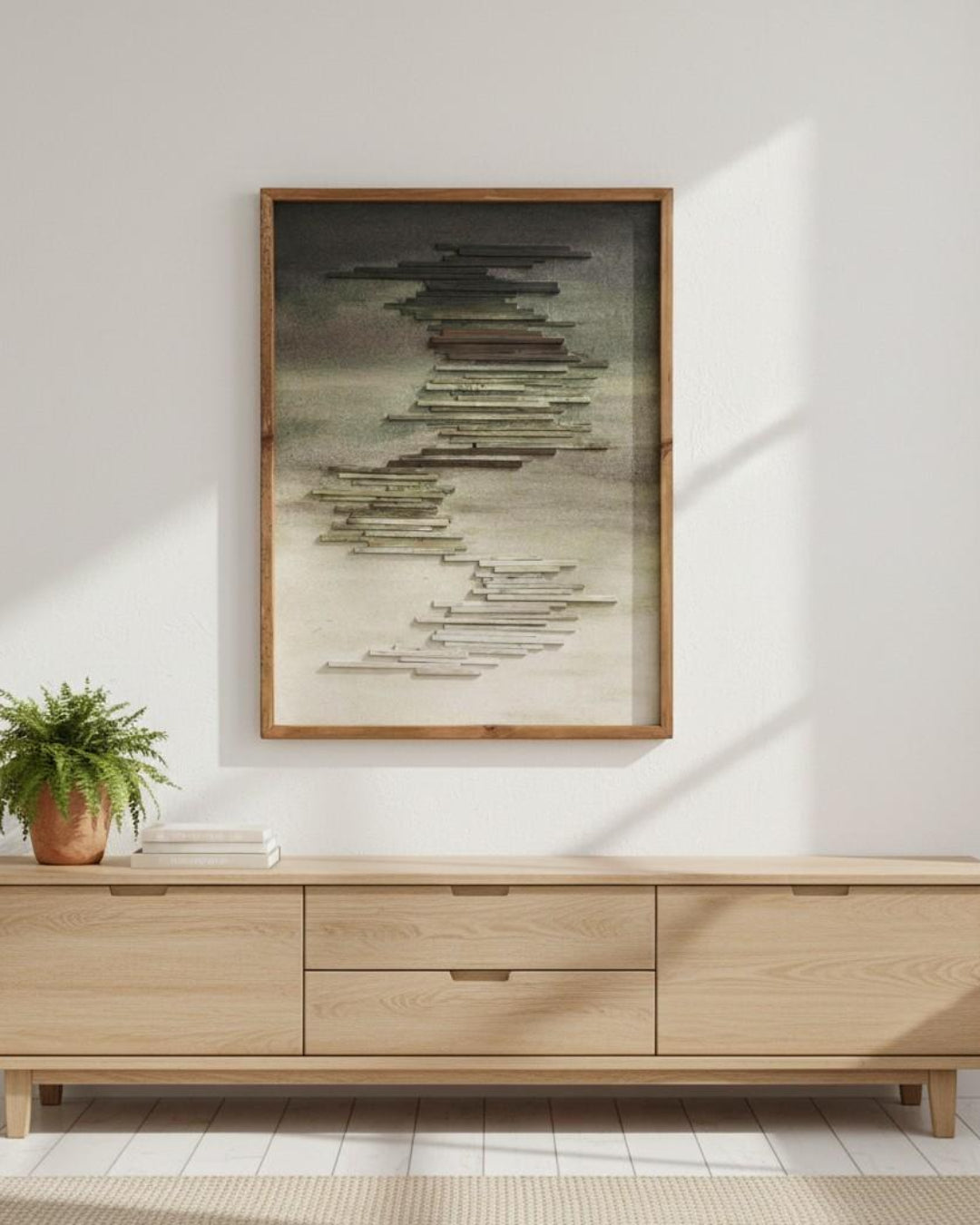 Elevate your space with the ATMOS wooden frame artwork, featuring a striking line painting that captures the essence of simplicity and elegance. Measuring 62x4x82 cm, this piece is crafted from high-quality canvas with mixed media, ensuring a unique texture and depth that will enhance any room. Its minimalist design makes it a versatile addition to both modern and traditional interiors, while the sturdy wooden frame adds a touch of sophistication. Transform your walls and inspire conversation with this captivating artwork that embodies both artistry and style