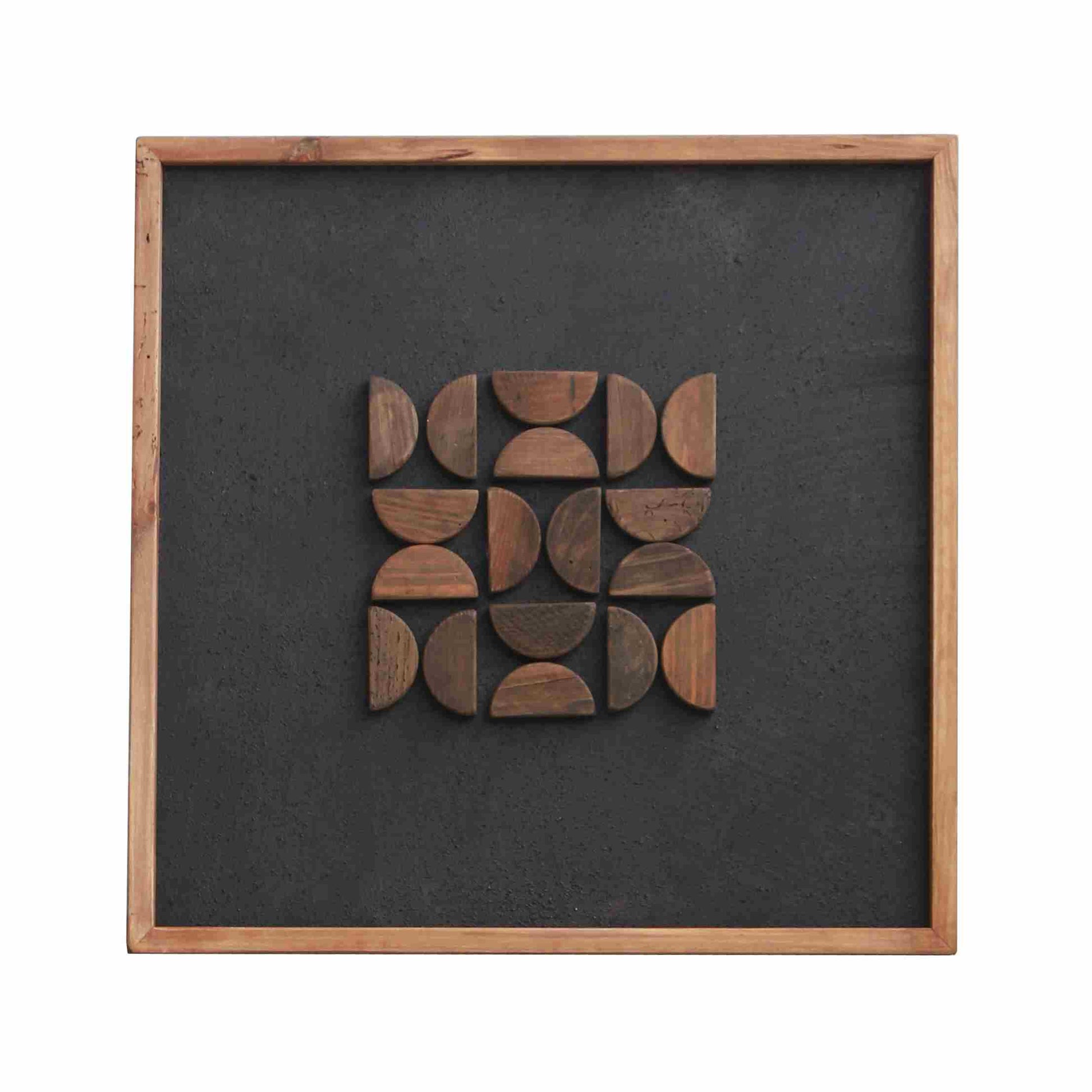 Elevate your home decor with the MODULDU - CRIMSON TEAK Frame, featuring a striking black and brown geometric pattern that adds a modern touch to any space. Crafted from recycled pine, this eco-friendly frame measures 62 cm x 62 cm x 4 cm, making it a perfect fit for showcasing your favorite artwork or photographs. Its sturdy construction ensures durability while the unique design serves as a captivating focal point in your living room, office, or gallery wall. Transform your environment with this stylish and sustainable choice today.
