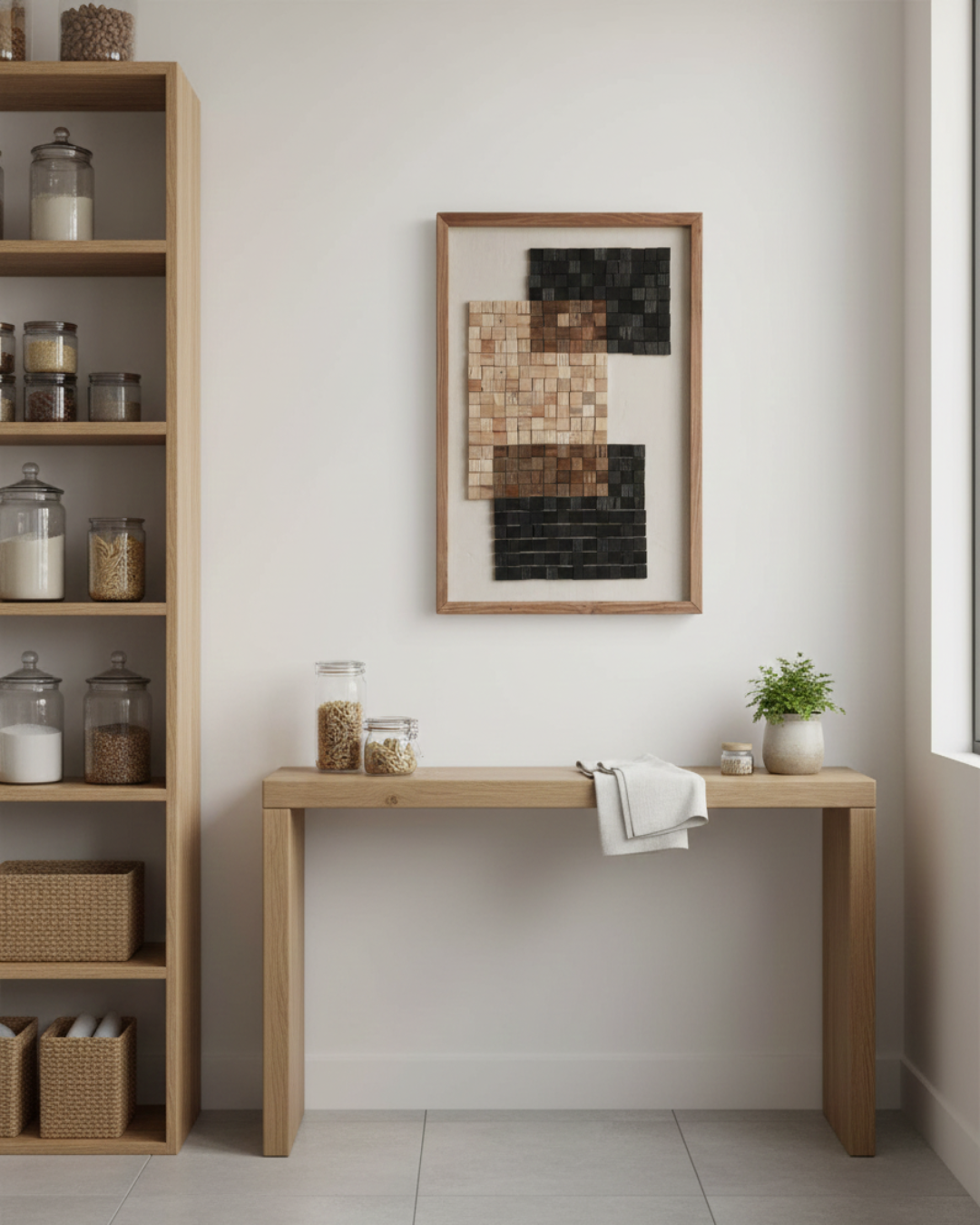 Introducing Tessellation Tones, a stunning piece of art that seamlessly blends craftsmanship and creativity. This exquisite wooden frame showcases a captivating mosaic tile design, measuring 42*4*62 cm, making it a perfect statement piece for any room. Crafted from high-quality canvas with mixed media, Tessellation Tones not only enhances your decor but also adds a touch of sophistication and artistic flair. Elevate your space with this unique artwork that invites admiration and sparks conversation.