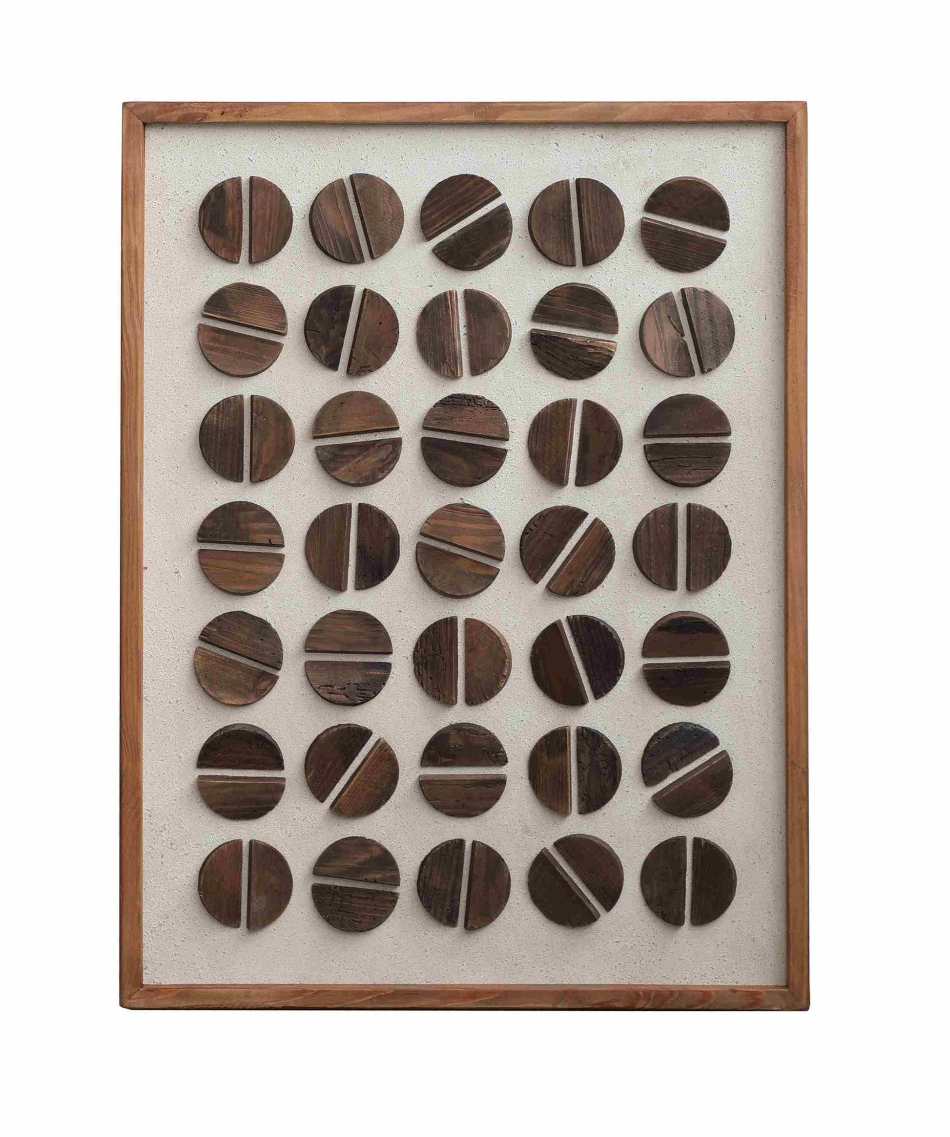 Transform your space with The Divided Disc Art, a stunning wooden frame crafted from recycled pine. Measuring 82 cm x 62 cm x 4 cm, this unique piece features an intricate circular pattern that adds a touch of elegance and sophistication to any room. Not only does it serve as a captivating focal point, but it also embodies eco-friendly design, making it a perfect choice for the environmentally conscious homeowner. Elevate your decor with this exquisite art piece that seamlessly blends style and sustainability.