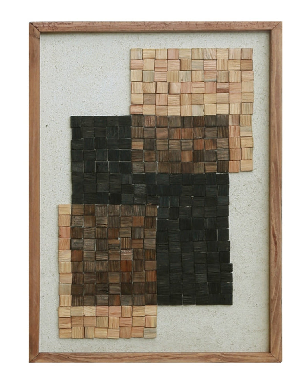 Elevate your space with The Quadrangle TONES, a stunning piece of art that seamlessly blends natural wood and striking mixed media. Measuring 42x4x62, this unique creation features a beautifully crafted wooden frame that encases a square of rich wood alongside an eye-catching arrangement of black and brown tiles. Perfect for adding a touch of sophistication to any room, this artwork not only serves as a focal point but also complements a variety of interior styles. Enhance your decor with this exquisite piece that embodies both elegance and creativity.